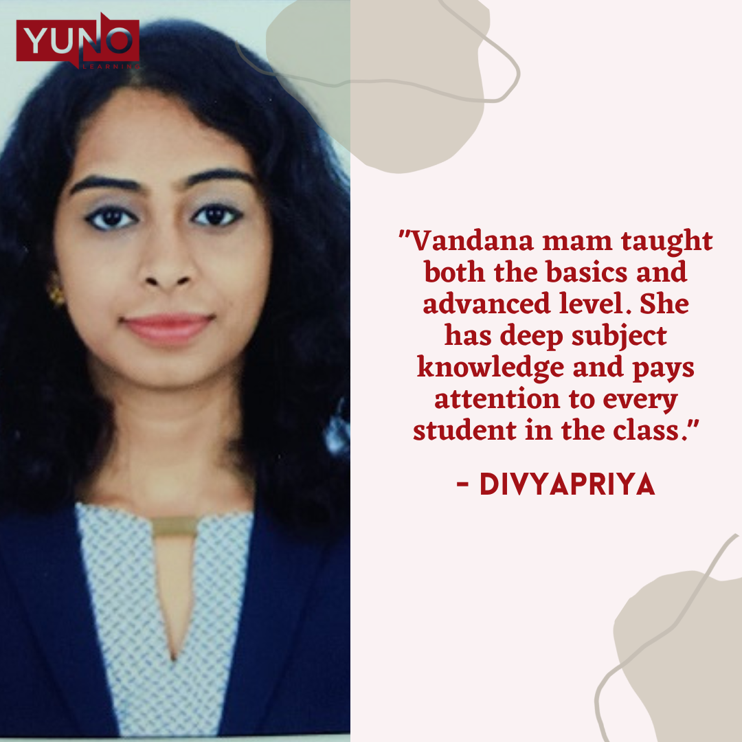 Divyapriya admired Yuno’s user-friendly practice tests, study materials, responsive customer support, and accessibility of class recordings. In her feedback, she lauded Vandana’s teaching approach, emphasizing its inclusivity by catering to both foundational and advanced levels. Vandana’s comprehensive subject knowledge and individualized attention to each student was especially noteworthy.