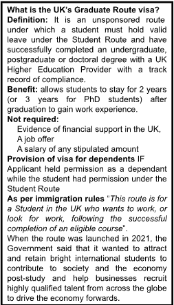 To the vast relief of the universities, industry leaders and foreign students, the committee found no evidence that the system was being abused, or undermining the integrity and quality of UK higher education and it recommended that the Graduate Route visa programme continue without change.